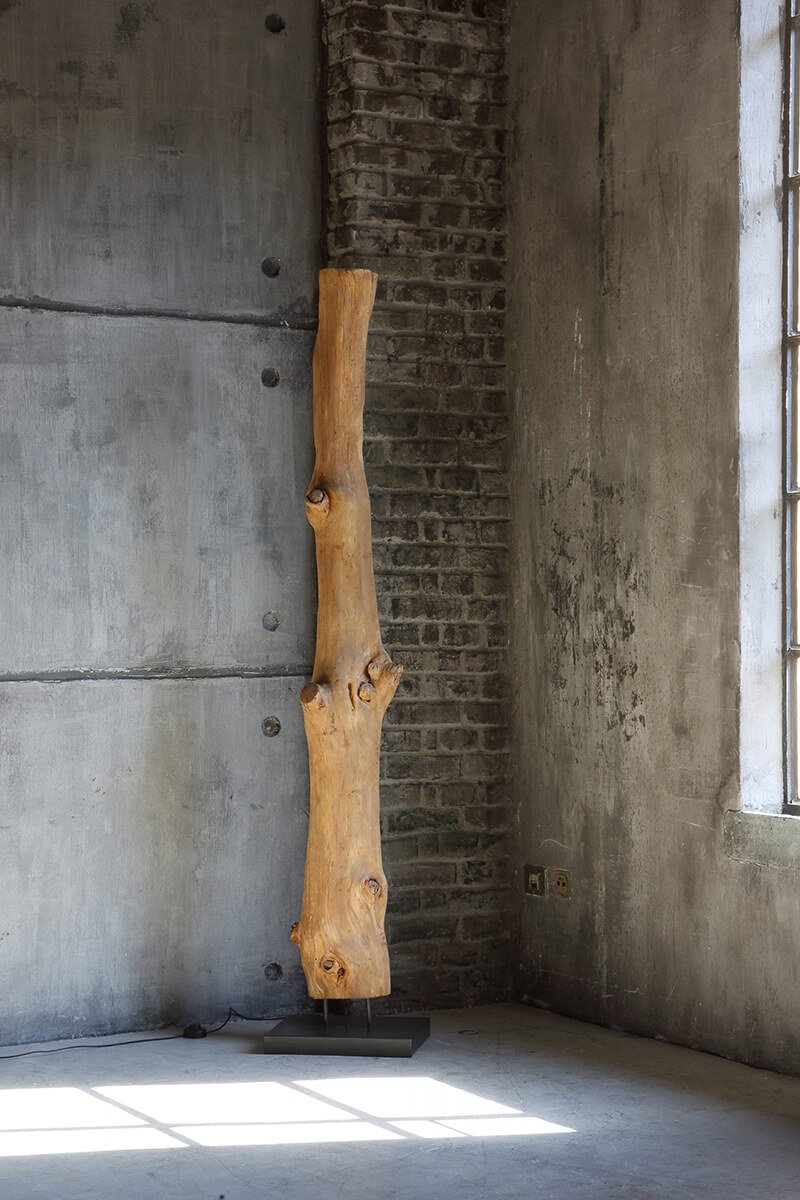 - Φωτιστικό δαπέδου σε παλαιωμένο μασίφ ξύλο, γυαλισμένο.